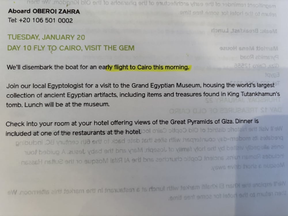 • We went a day early but spent it recovering from our flight and going for a dip in the Dead Sea. We stayed afterwards and did a much deeper dive, literally, into pyramids in Meidom, Saqqara, and Dahshur. My trip report is at the pages here. https://forums.tauck.com/discussion/15494/on-the-road-again/p1