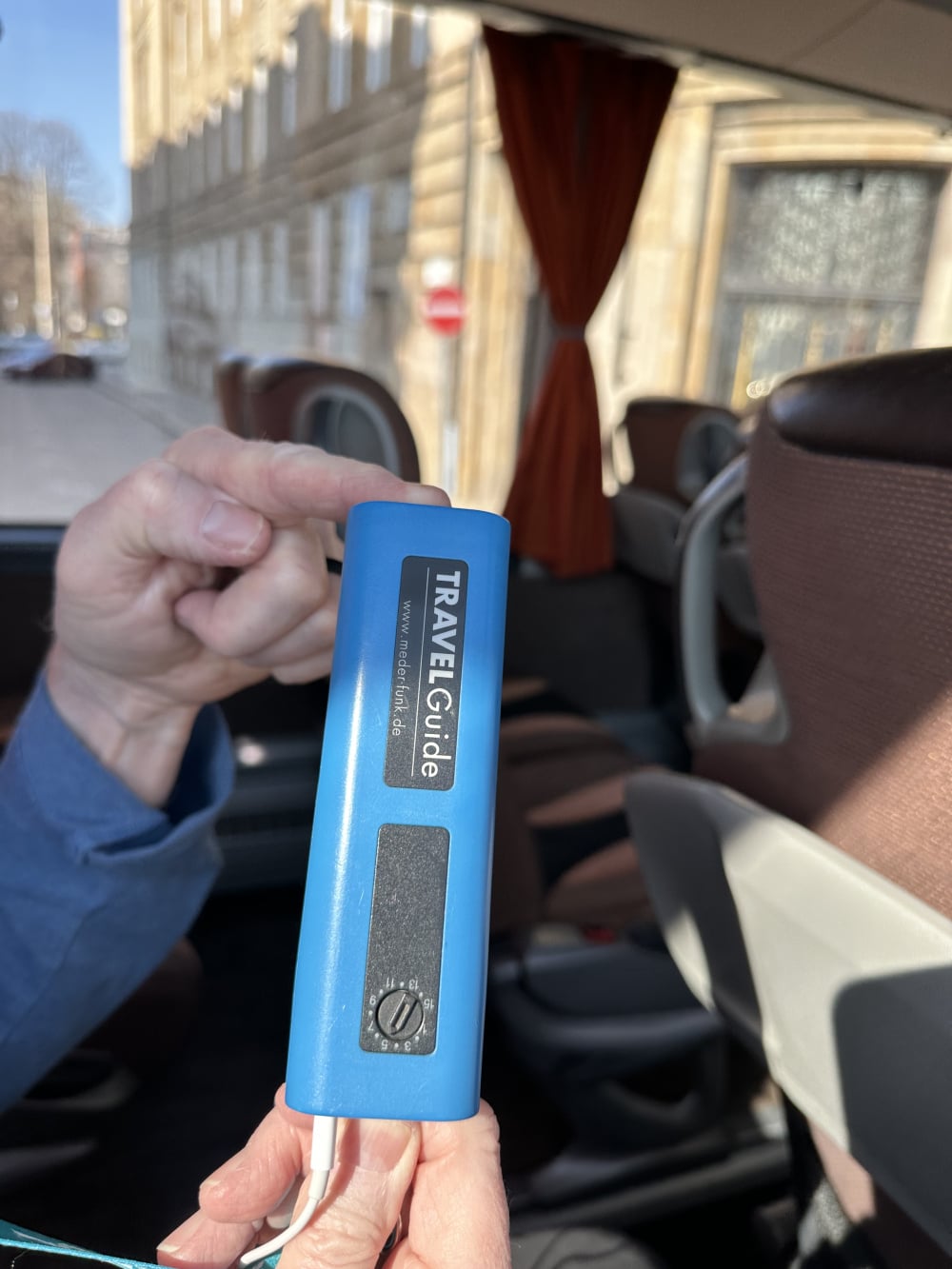 • Off the subject, but here is the listening device we had on a recent tour. Rechargeable, they do not turn on or off, they work only when tour guide is talking into it. I thought it was nicer than the ones Tauck uses. I really think the Tauck ones are so outdated, we’ve had them on every tour since 2003.