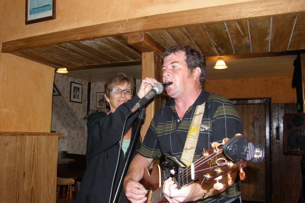 Speaking of Irish music in pubs. Here's a picture (vintage 2008) of my wife helping Richie Roberts, a traditional Irish singer, in a pub in Dunmore East.