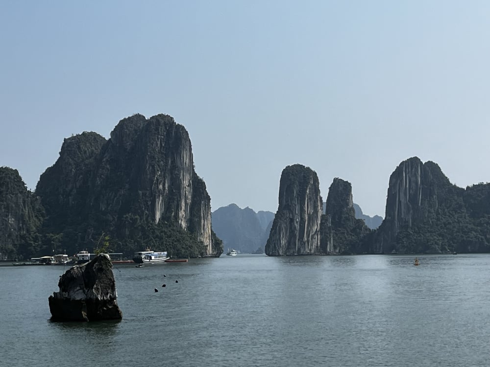 Here is Halong Bay in 2018. It was a Tauck overnight trip on a lovely wooden boat. I recommend an overnight, you will see more, floating fishing village, caves, monkeys etc etc. sunset and dawn.