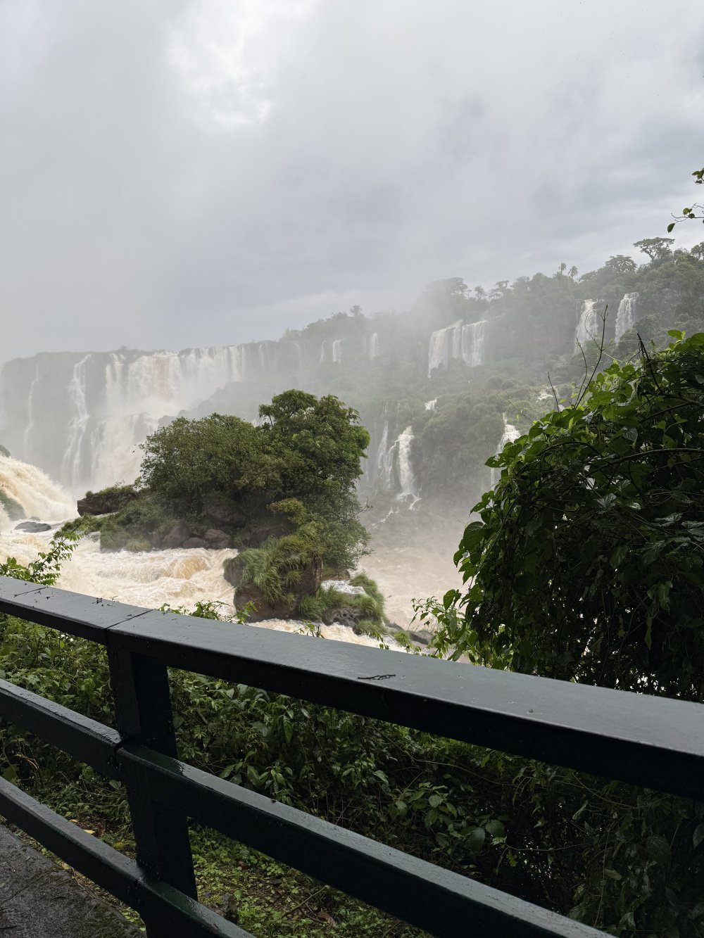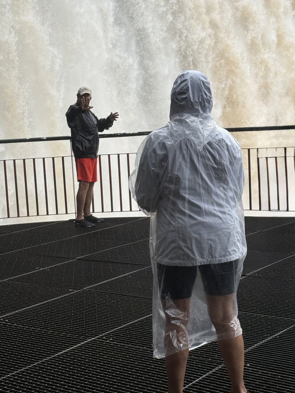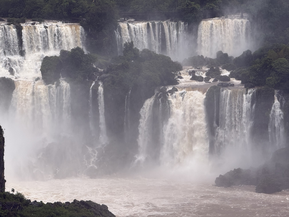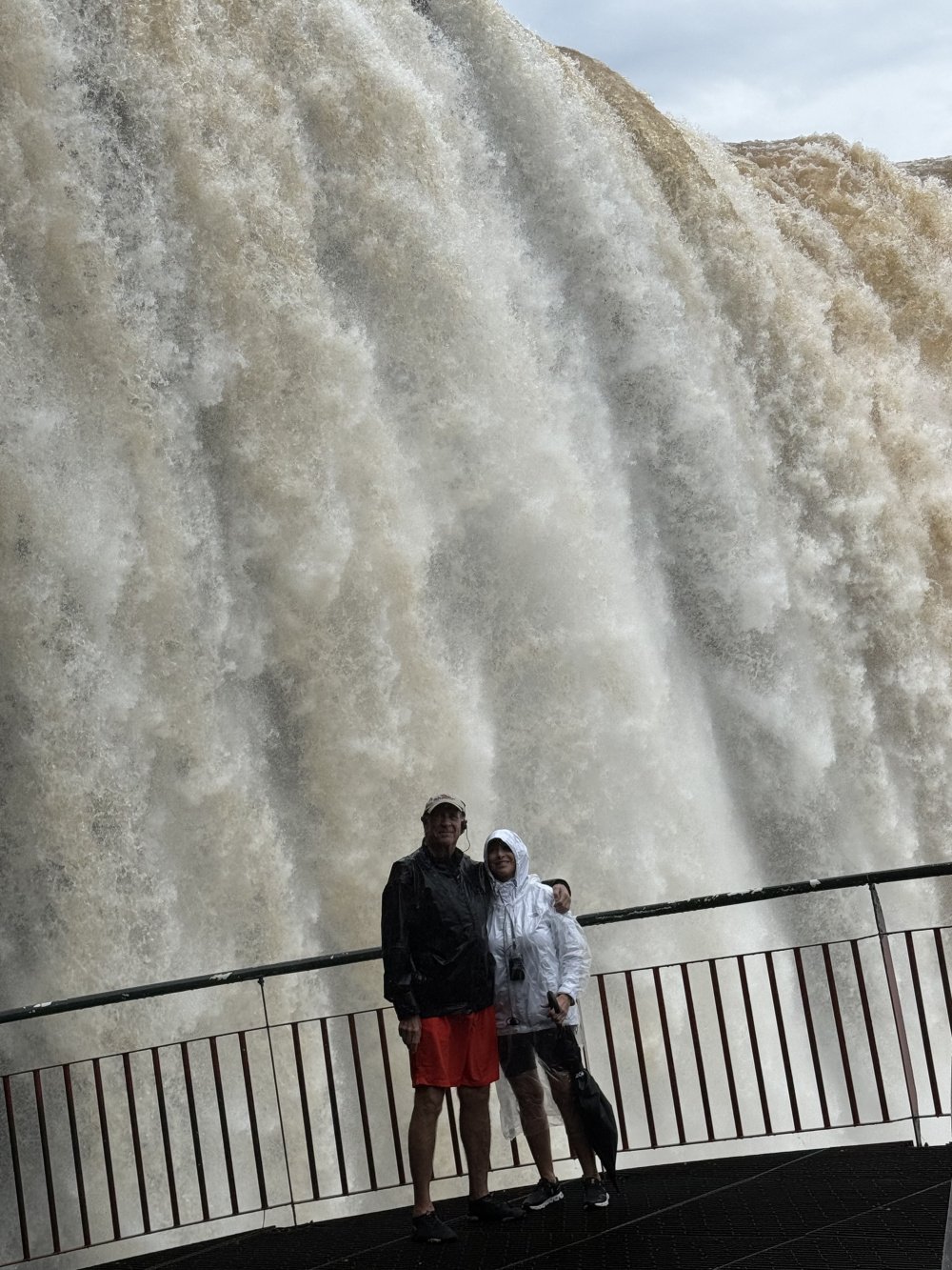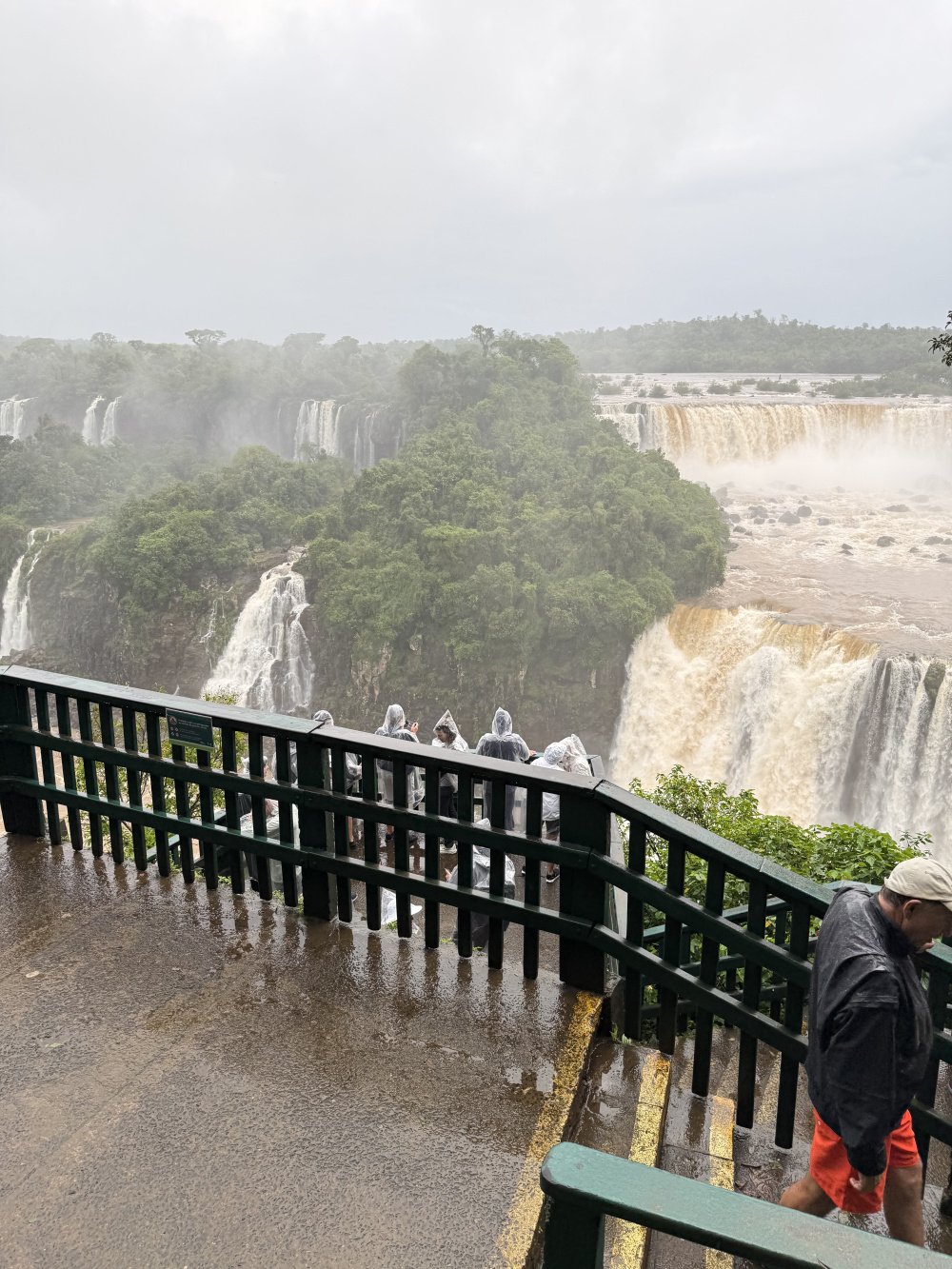 I was on Essence of SA exactly 1 yr after Smiling Sam (he was my guru). We had 2 rainy days when we were at the Falls on the Brazil side. The negative side of this was the helicopter ride was scrubbed and we got wet (the hotel did supply plastic ponchos) The plus side was no humidity and cooler temps and the falls were VERY full. The jet boats still went despite the rain. Even with rainwear and the plastic poncho, we got drenched (is there a word for beyond drenched???). I have never been so wet EVER!! Despite this, the boat ride was the highlight of the trip. We seemed to go under the falls - you could feel the power of the water. It was beyond amazing.