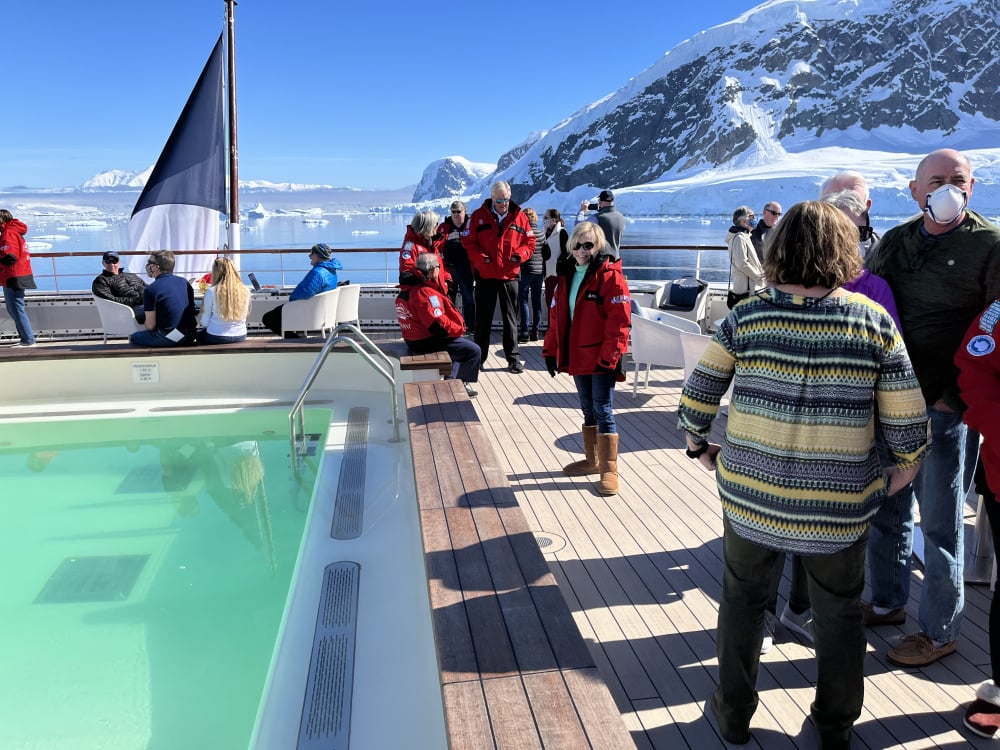 • Different ship, but here's a video of the pool on the ship during an Antarctic cruise - https://www.mikeandjudytravel.com/2021-2Antarctica-05.htm#Pool