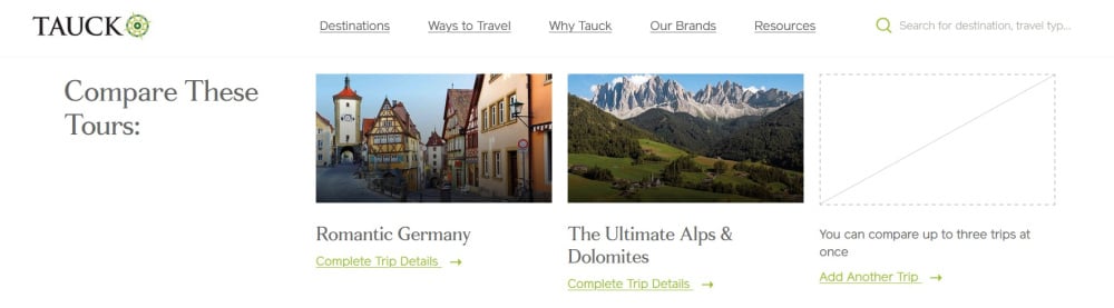 The resulting attributes from the comparison search are very limited. It might be beneficial if one is only looking for tours within a specific time frame or duration.