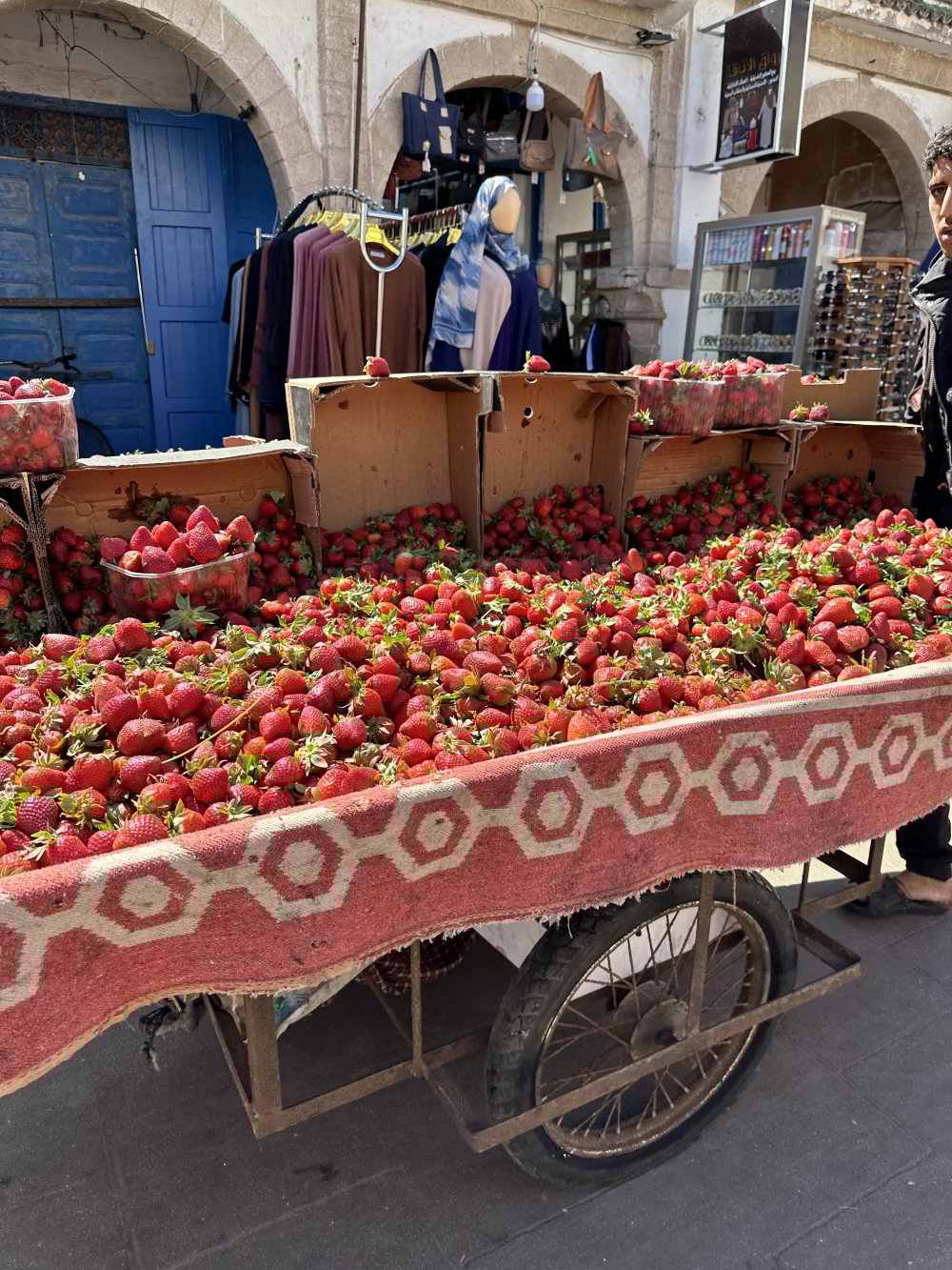 We stayed in Essaouira over night in a very swanky hotel and toured the fish market area and went into the bazar . It’s a really nice place to visit. It’s a favorite of the Germans for the winter so lots of German food choices too.