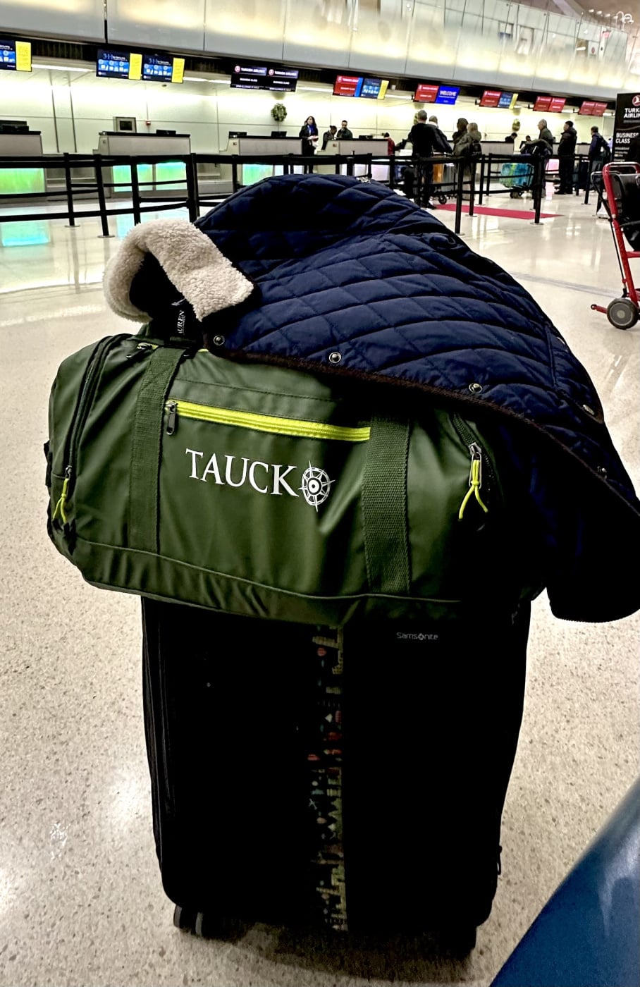 • Although the duffles have changed in style over the years, they are still huge. We don’t just travel with a duffel from home because they can be heavy to carry as the ones for K and T don’t have wheels. I know SeaLord has some sort of wheeled thing he uses to transport his.